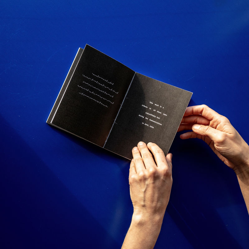 This work is a tribute to all the eyes lost due to unjustified police shootings during the demonstrations in Chile 2019. More than 400 people suffered eye damage between October 2019 and December 2021 in Chile.